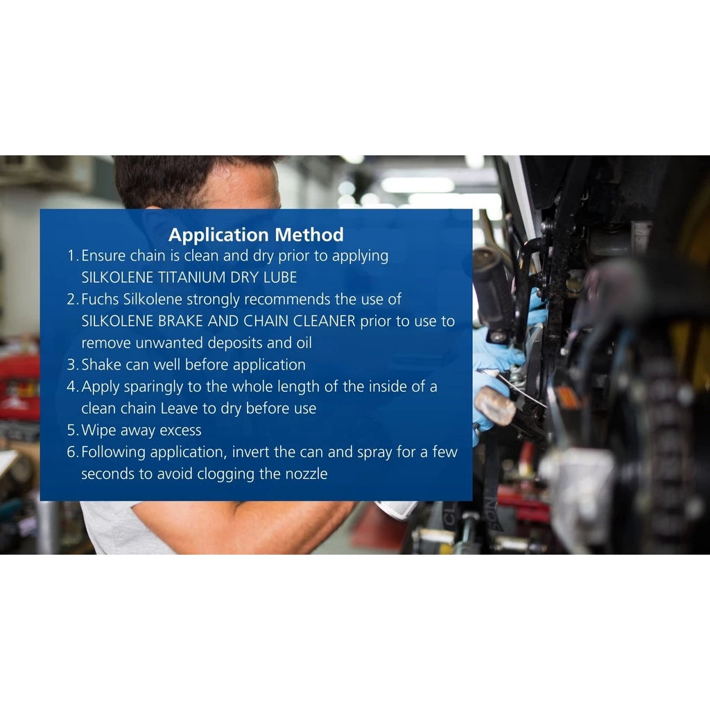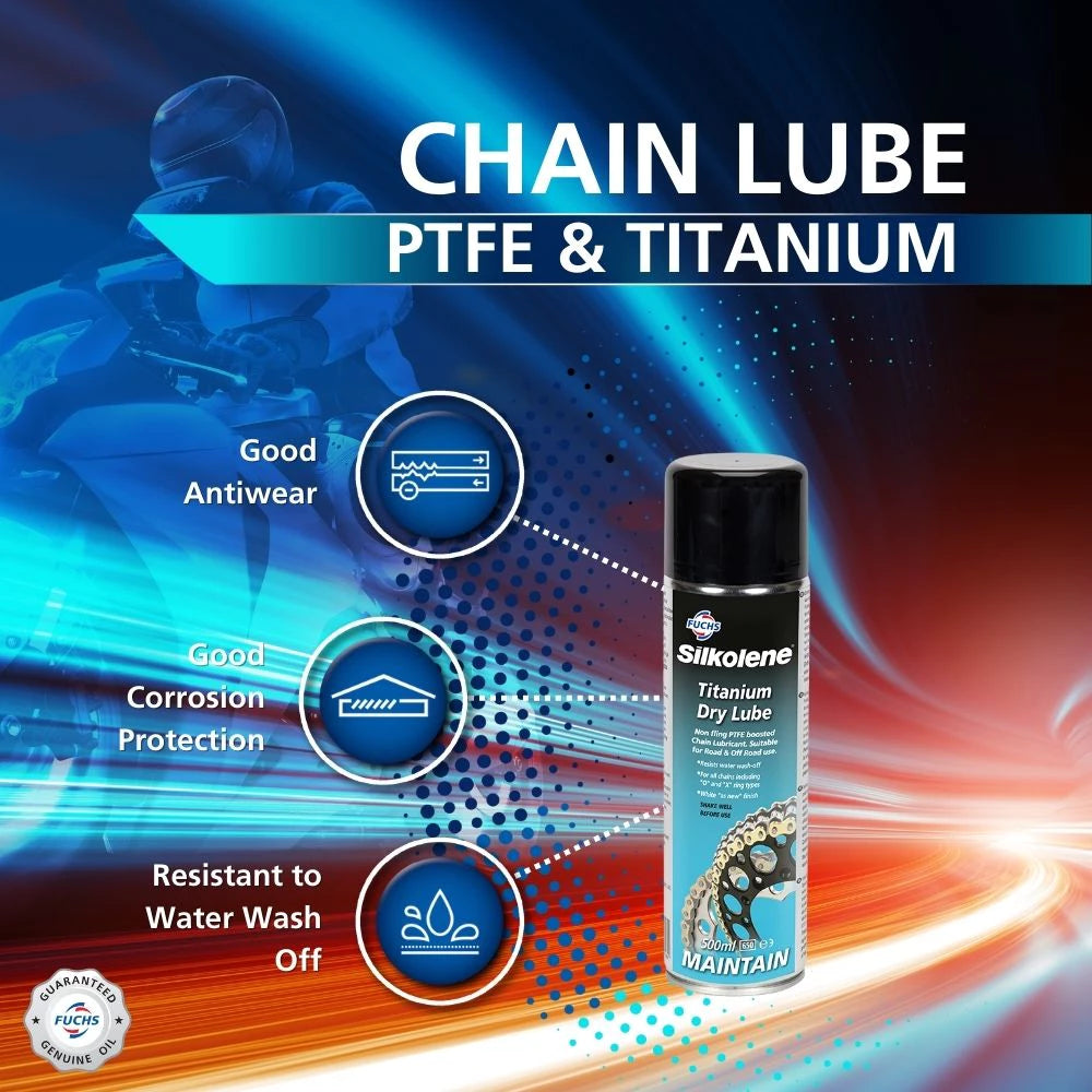 The Fuchs – Silkolene Titanium Dry Lube SP (500 ml) from Industrial Shed delivers professional-grade, PTFE-enhanced dry lubrication—perfect for trade professionals who demand clean, high-performance chain care in extreme conditions.