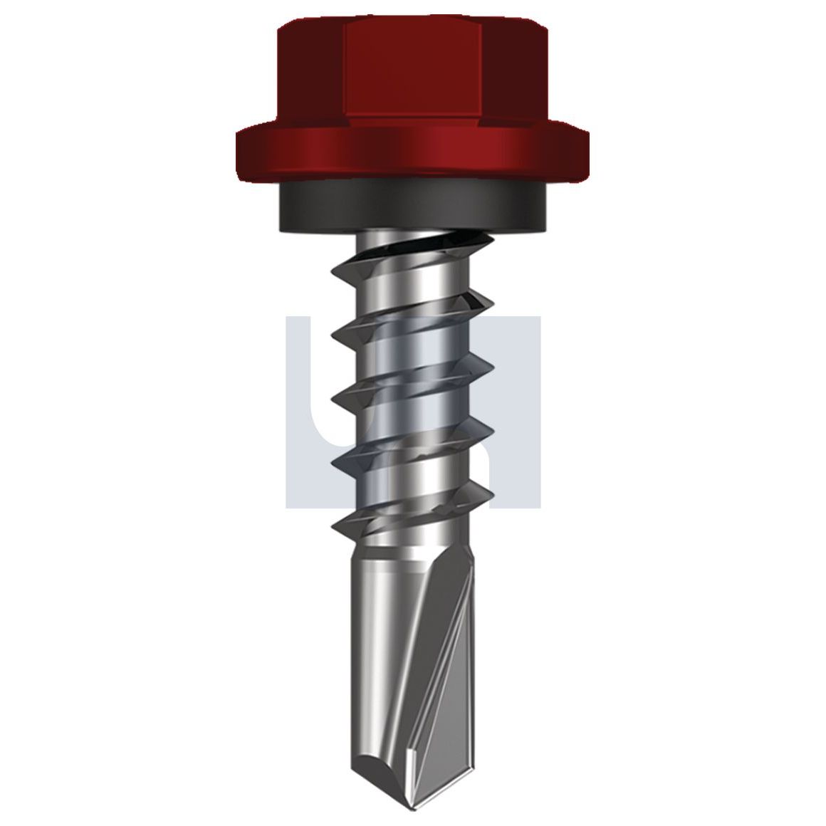 Hobsons - #14-10 x 25 Manor Red (Scoria) -Cl4 As3566 Metal Sds Hex Head + Washer | Q327-Mr (Pack Of 1000)
