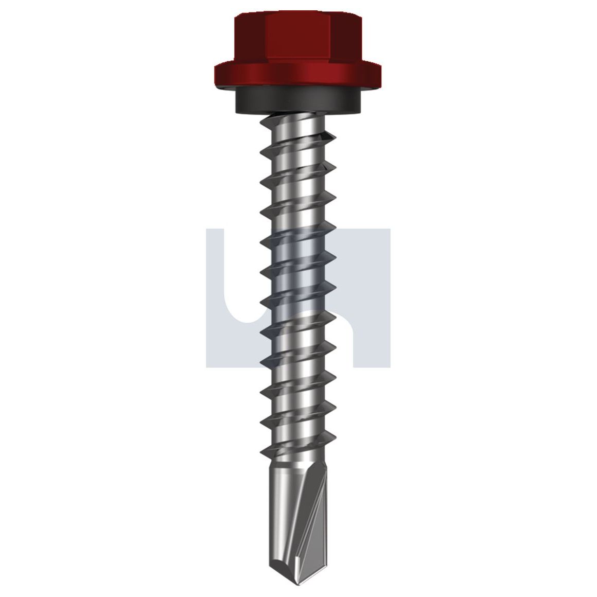 Hobsons - #14-10 x 42 Manor Red (Scoria) -Cl4 As3566 Metal Sds Hex Head + Washer | Q330-Mr (Pack Of 1000)