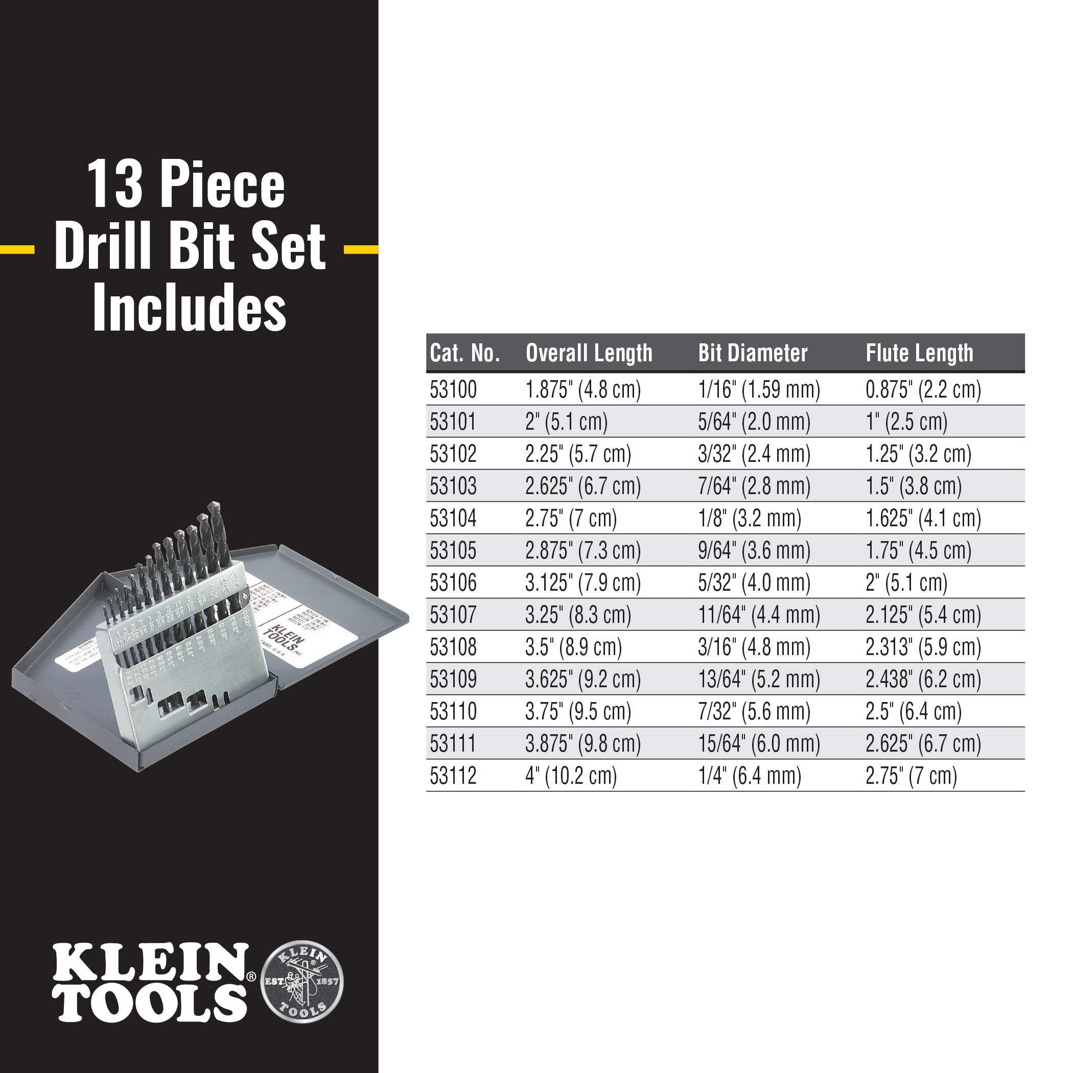 Klein Tools - DRILL BIT SET 13 PIECE HSS | A-53002