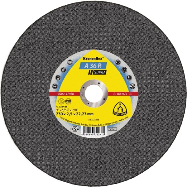 A 36 R cutting-off wheels, 125 x 2 x 22,23 mm flat. Engineered for maximum cut rate and long life, trusted by professionals in workshops and on-site jobs.