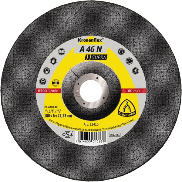 A 46 N grinding discs, 125 x 6 x 22,23 mm depressed centre. Engineered for maximum cut rate and long life, trusted by professionals in workshops and on-site jobs.