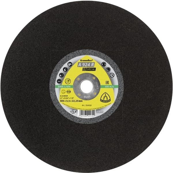 A 924 R large cutting-off wheels, 356 x 4 x 25,4 mm flat. Engineered for maximum cut rate and long life, trusted by professionals in workshops and on-site jobs.