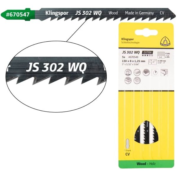 JS 302 WQ keyhole saw blades 100 x 8 x 1,25 mm. Engineered for maximum cut rate and long life, trusted by professionals in workshops and on-site jobs.