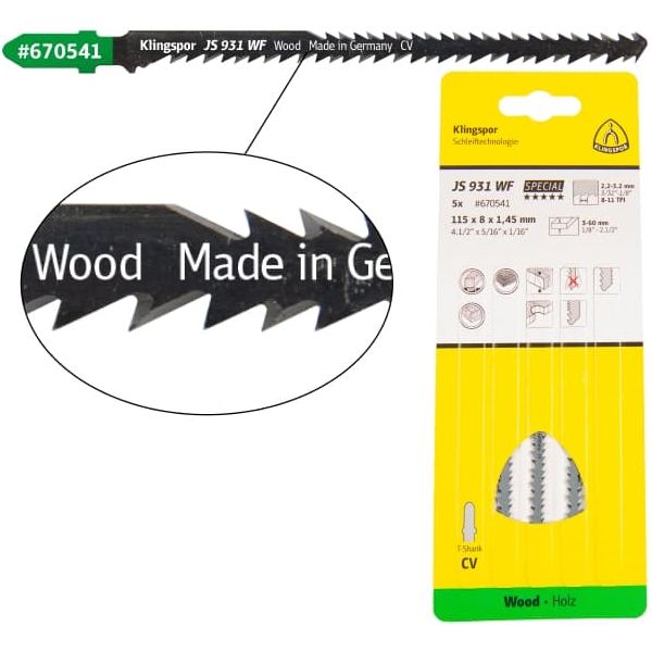 JS 931 WF keyhole saw blades 115 x 5 x 1,45 mm. Engineered for maximum cut rate and long life, trusted by professionals in workshops and on-site jobs.