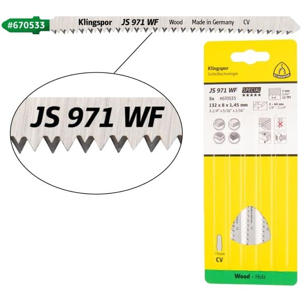 JS 971 WF keyhole saw blades 132 x 8 x 1,45 mm. Engineered for maximum cut rate and long life, trusted by professionals in workshops and on-site jobs.