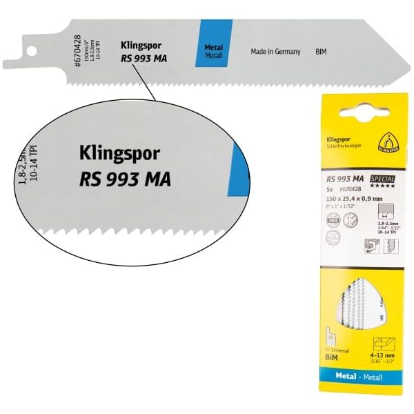 RS 993 MA saber saw blades 150 x 25,4 x 0,9 mm. Engineered for maximum cut rate and long life, trusted by professionals in workshops and on-site jobs.