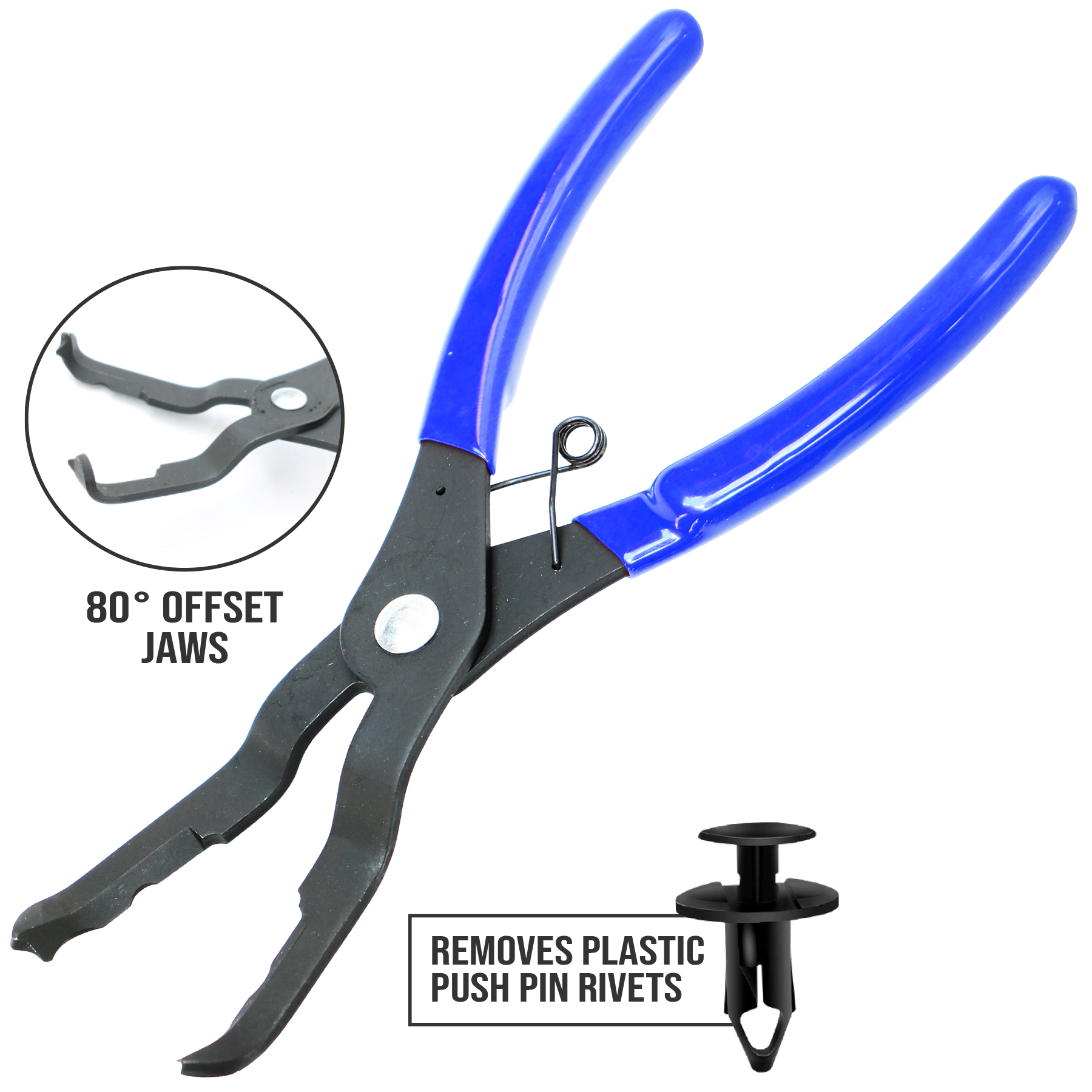 Engineered for efficient and damage-free removal of automotive trim clips, these Trim Clip Pliers with 80° offset jaws are a must-have for panel work, interior trim, and fastener removal jobs in tight spaces.