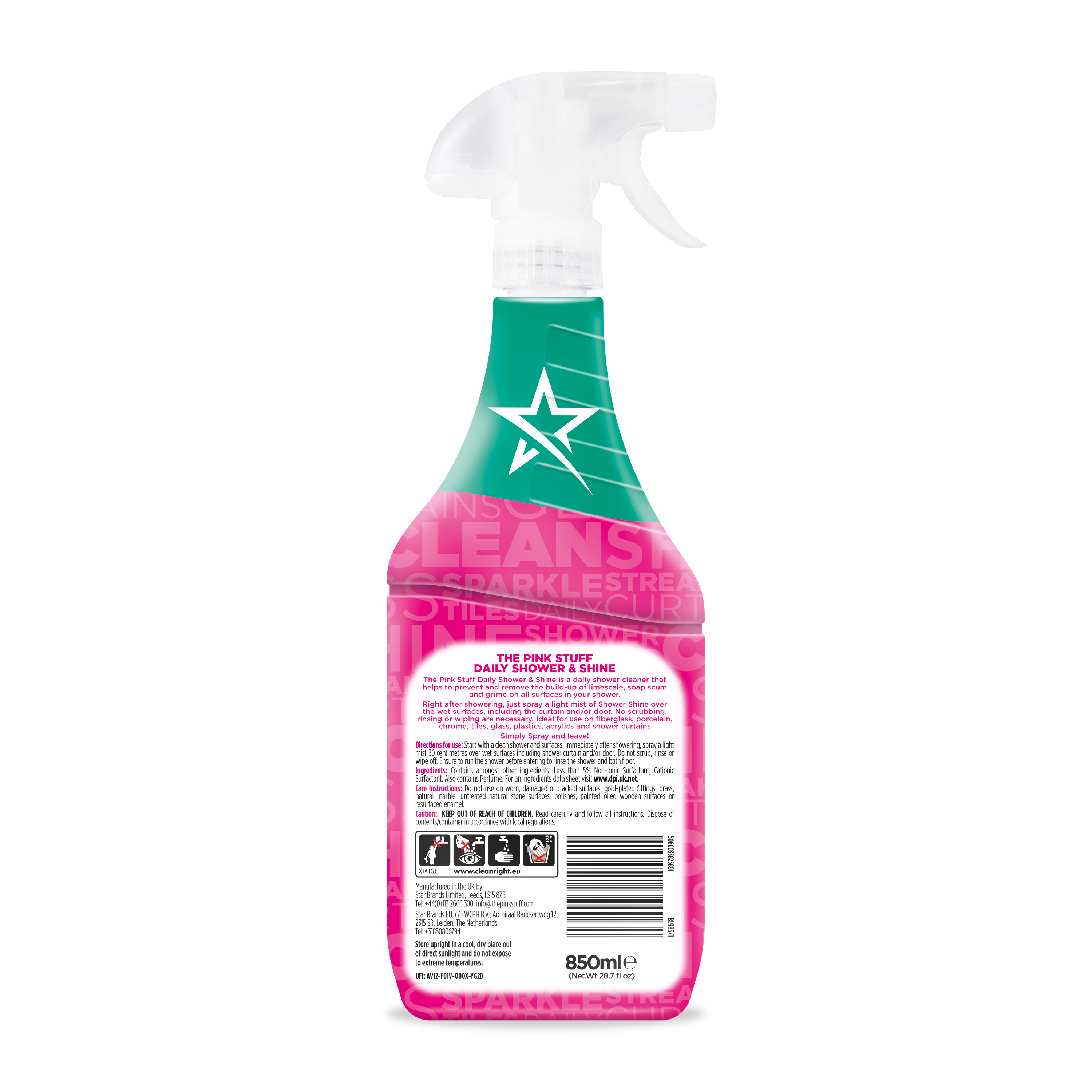 ‣ Leaves a clear, streak-free finish—no rinsing required.