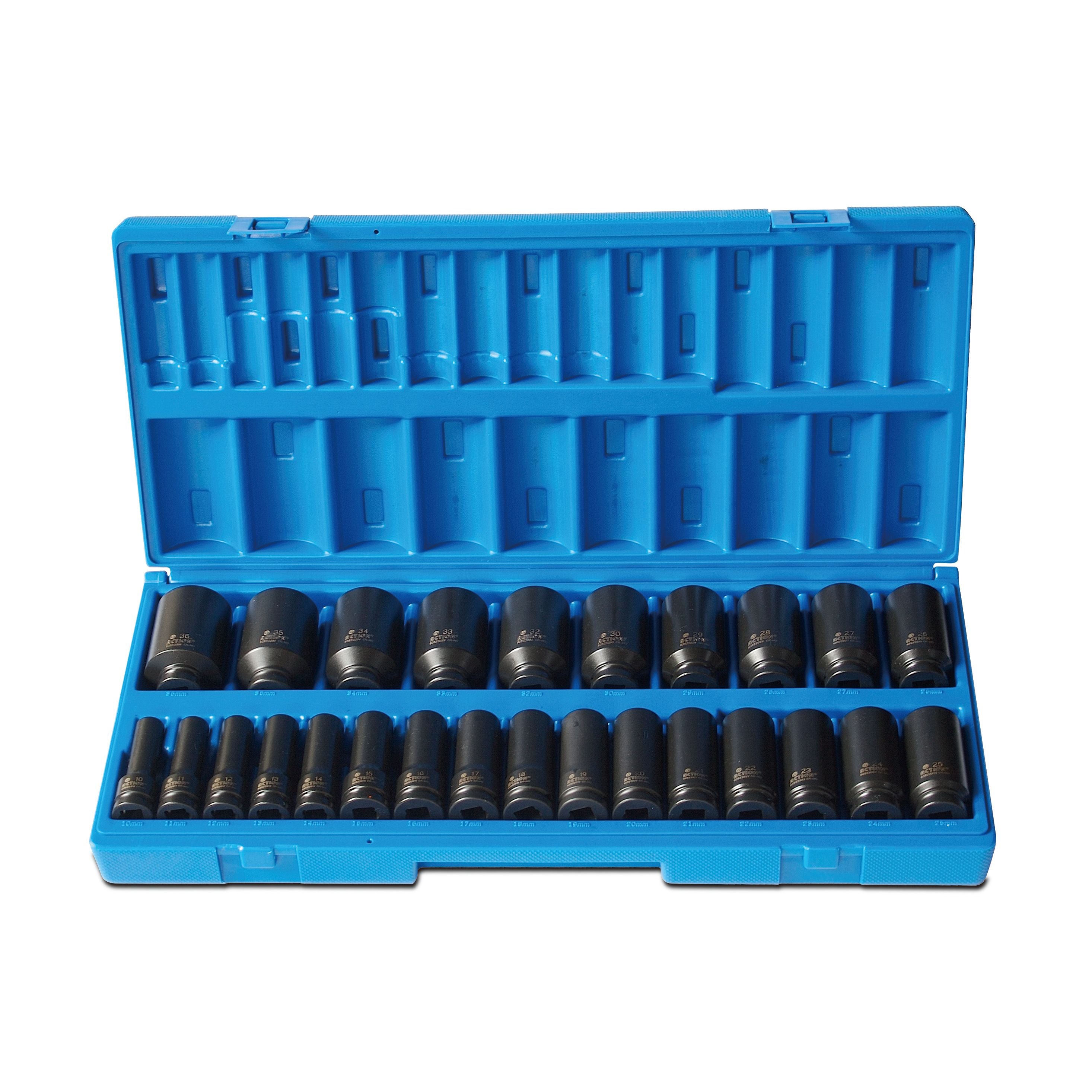 Action - 26 Piece 1/2" Drive Metric Deep Impact Socket Set - Carton (x2) | 605222601-2