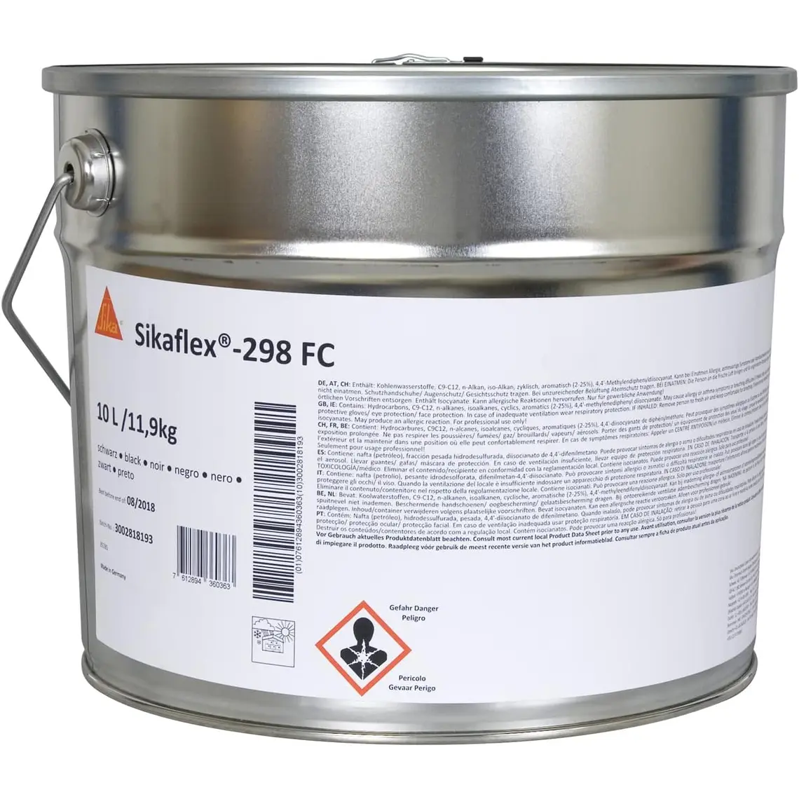 Sikaflex-298Fc Black C813 Pl 10L by Sika provides a high-performance sealant and adhesive for demanding bonding and sealing tasks across construction, glazing, and automotive applications.