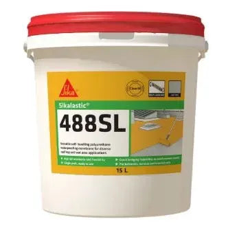 Sikalastic-488 SL Concrete Grey Pl 15L by Sika is a reliable waterproofing solution that protects concrete surfaces from water ingress, ideal for balconies, terraces and roofs.