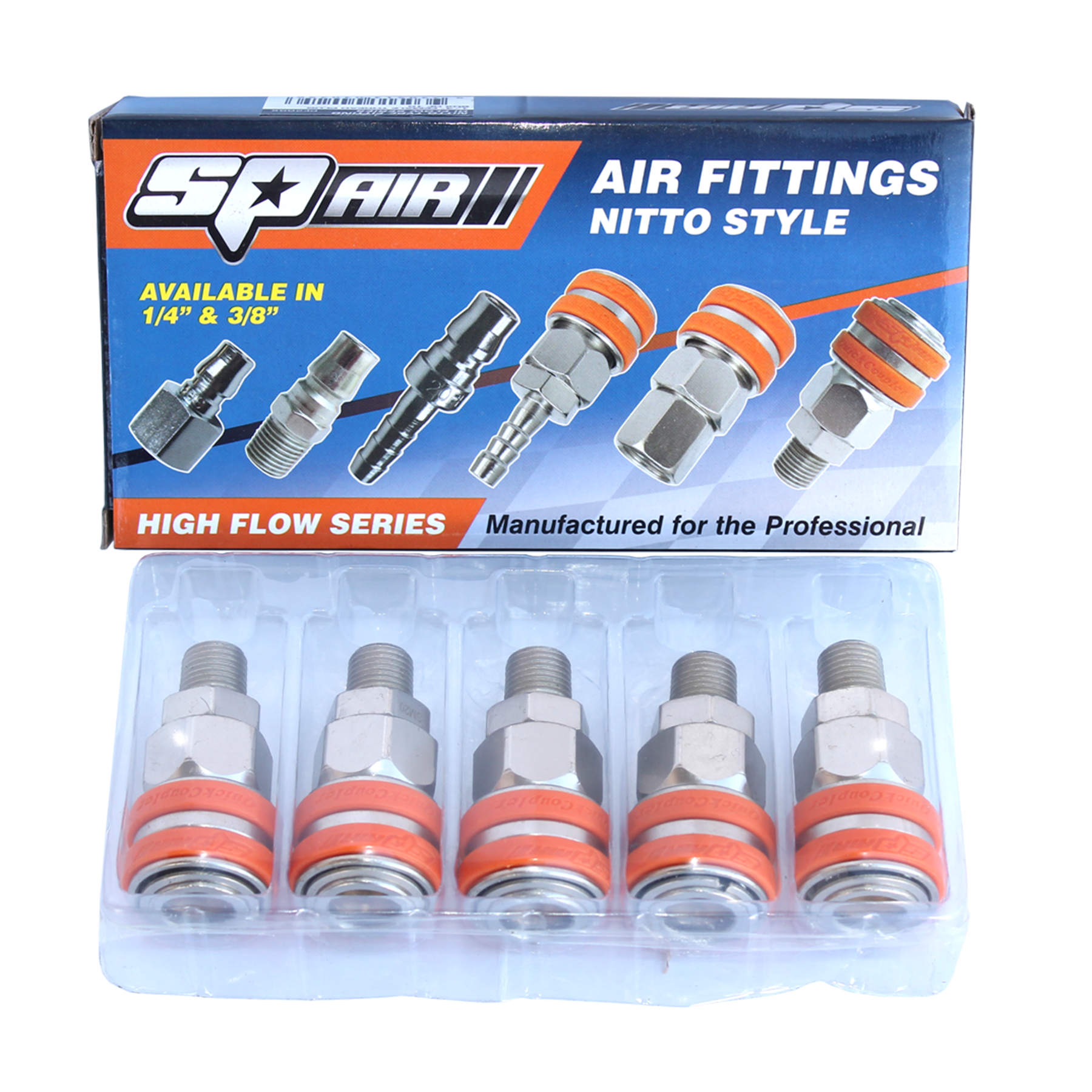 SP Air Air Tool Fitting - Coupler Male Thread 1/2" Nitto Style (Box Of 5) by SP Air delivers secure, quick-connect performance for professional pneumatic work in workshops and automotive environments.
