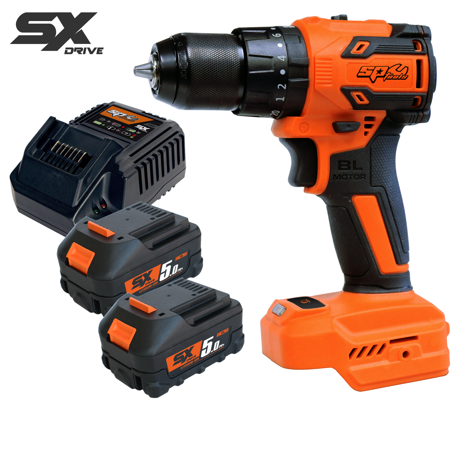 SP Cordless - Cordless - 18V Drill/Driver Brushless - 5.0Ah X2 Batteries & Charger - Sx Drive by SP Tools delivers powerful brushless performance for professional drilling and driving tasks on the job site.