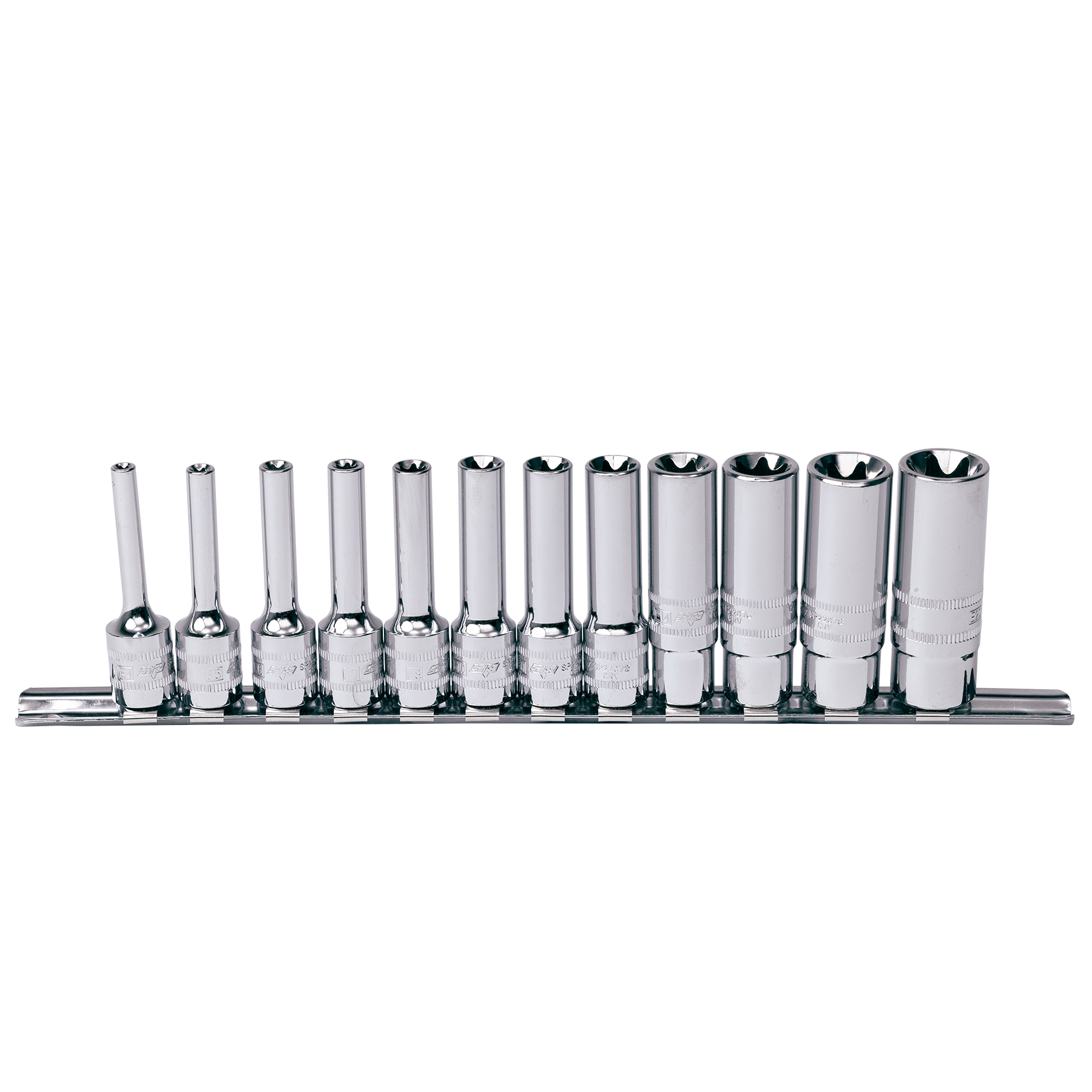 • E-Torx - 12Pc • E4 E5 E6 E7 E8 E10 E11 E12 E14 E16 E18 & E20 • Deep • 1 X Socket Rail