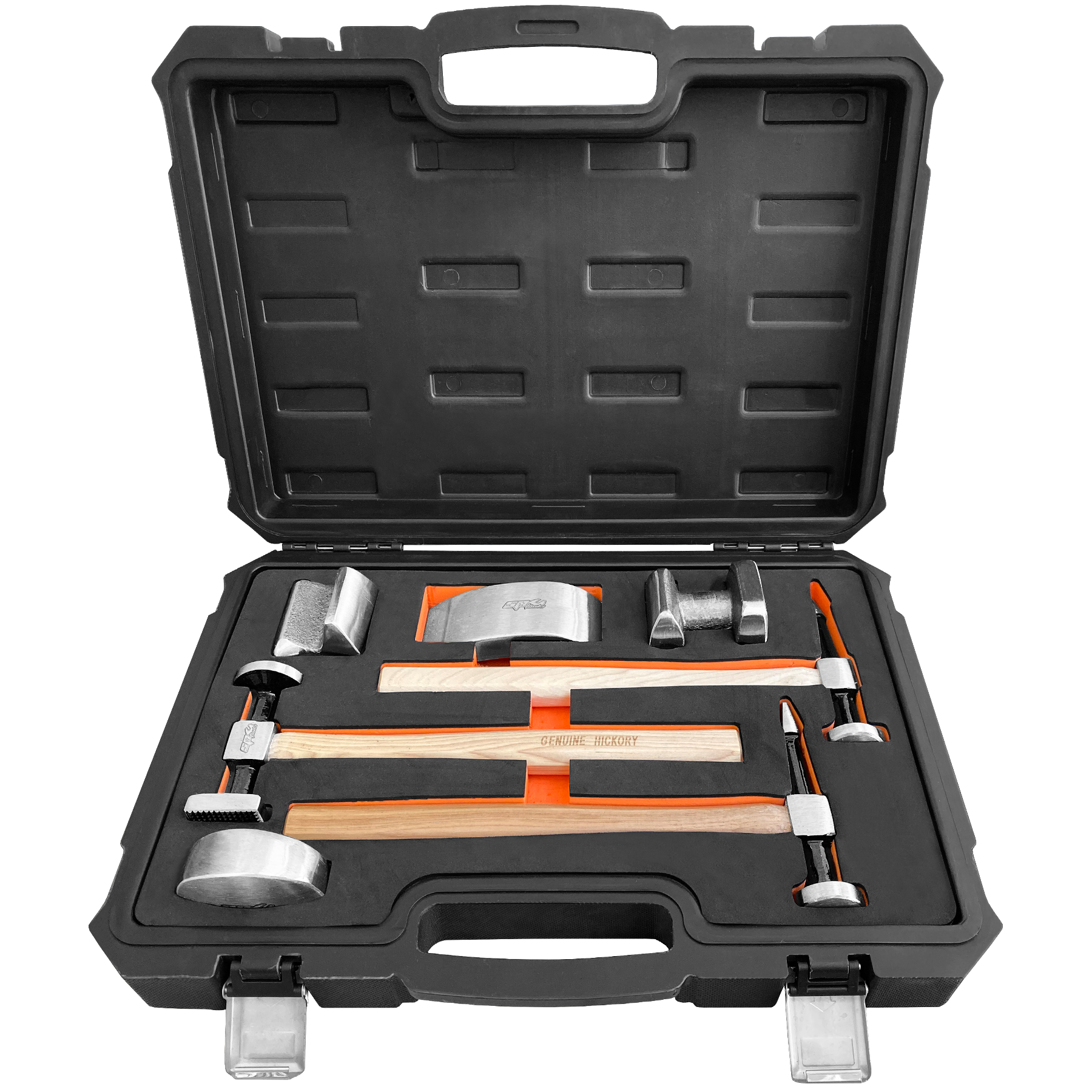 Panel Beating Set - 7 Piece • The Perfect Panel Beating Set For Any Workshop, Featuring The Most Commonly Used Dollies & Hammers - You’Ll Be Well Equipped To Handle The Vast Majority Of Panel Repairs. • Genuine Hickory Handles • Forged From High Quality Carbon Steel • Heat Treated For Increased Durability • Housed In A High Quality Eva Foam Storage Solution • Heavy Duty X-Case Made To Withstand The Conditions Of A Busy Workshop • 1X Pick & Finish Hammer • 1X Standard Bumping Hammer • 1X Straight Pein & Finishing Hammer • 1X Double End Hand Dolly • 1X Curved Dolly • 1X Utility Dolly • 1X Heel Dolly