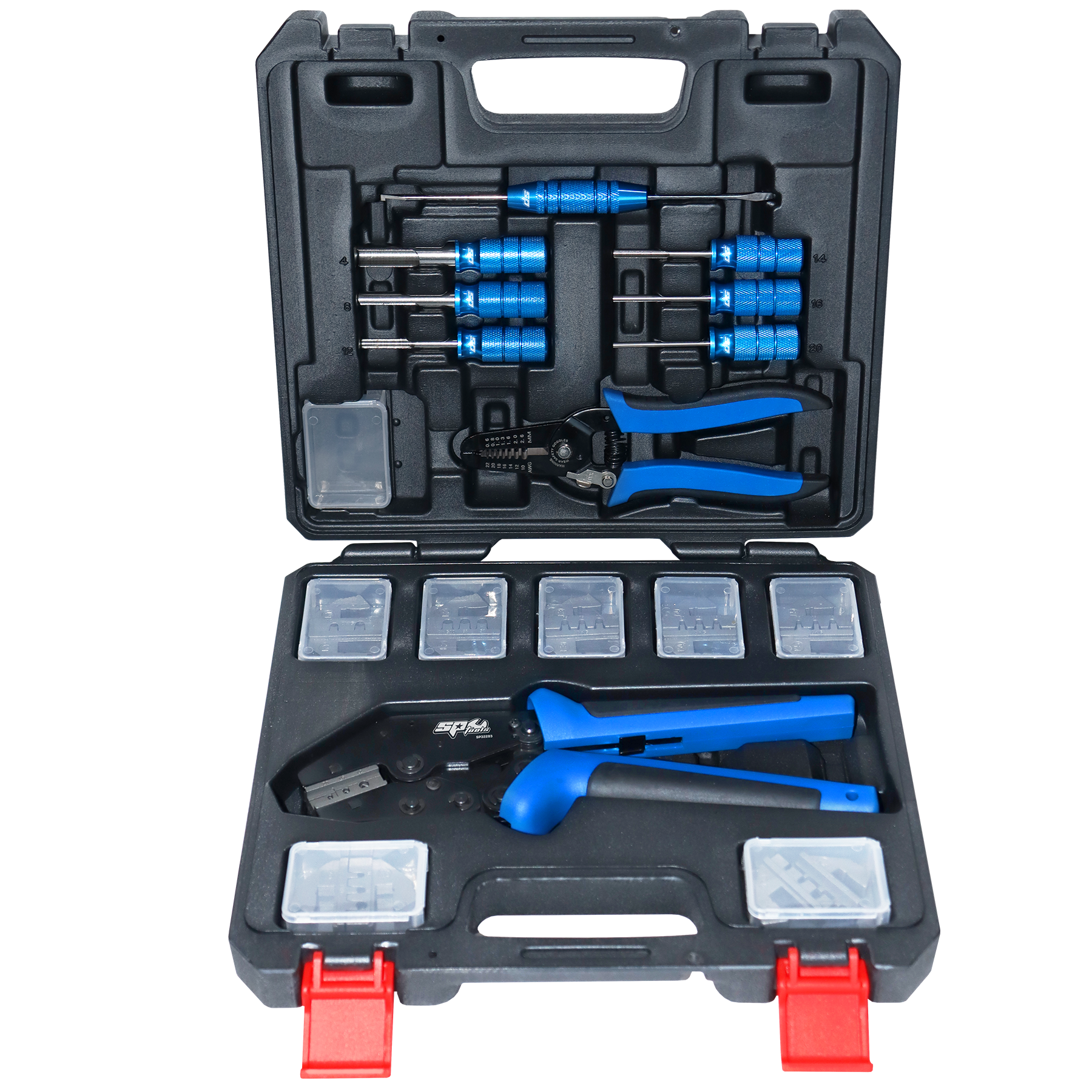 17Pc Deutsch Terminal Repair Kit Kit Includes: • Heavy Duty 230mm (9”) Ratchet Crimper • Spring Loaded Wire Stripper • Wedgelock Removal Tool • Terminal Release Tools: 4, 8, 12, 14, 16 & 20 Gauge