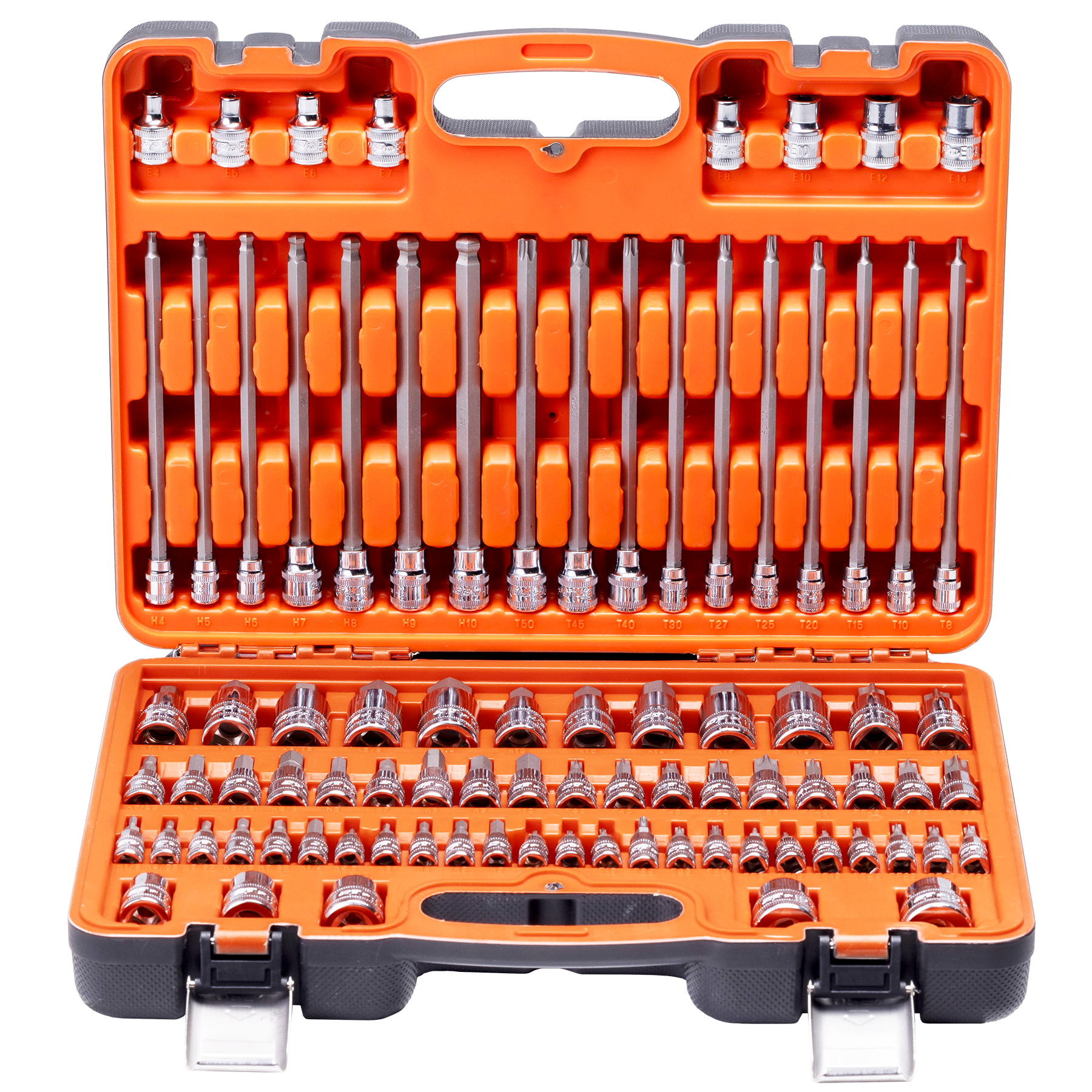 1/4 3/8 & 1/2Dr Hex & Torx Socket Bit Set• Specialised Range Of Of Types And Lengths • Spring Loaded Bal Bearings Hold Bits Firmly In Place