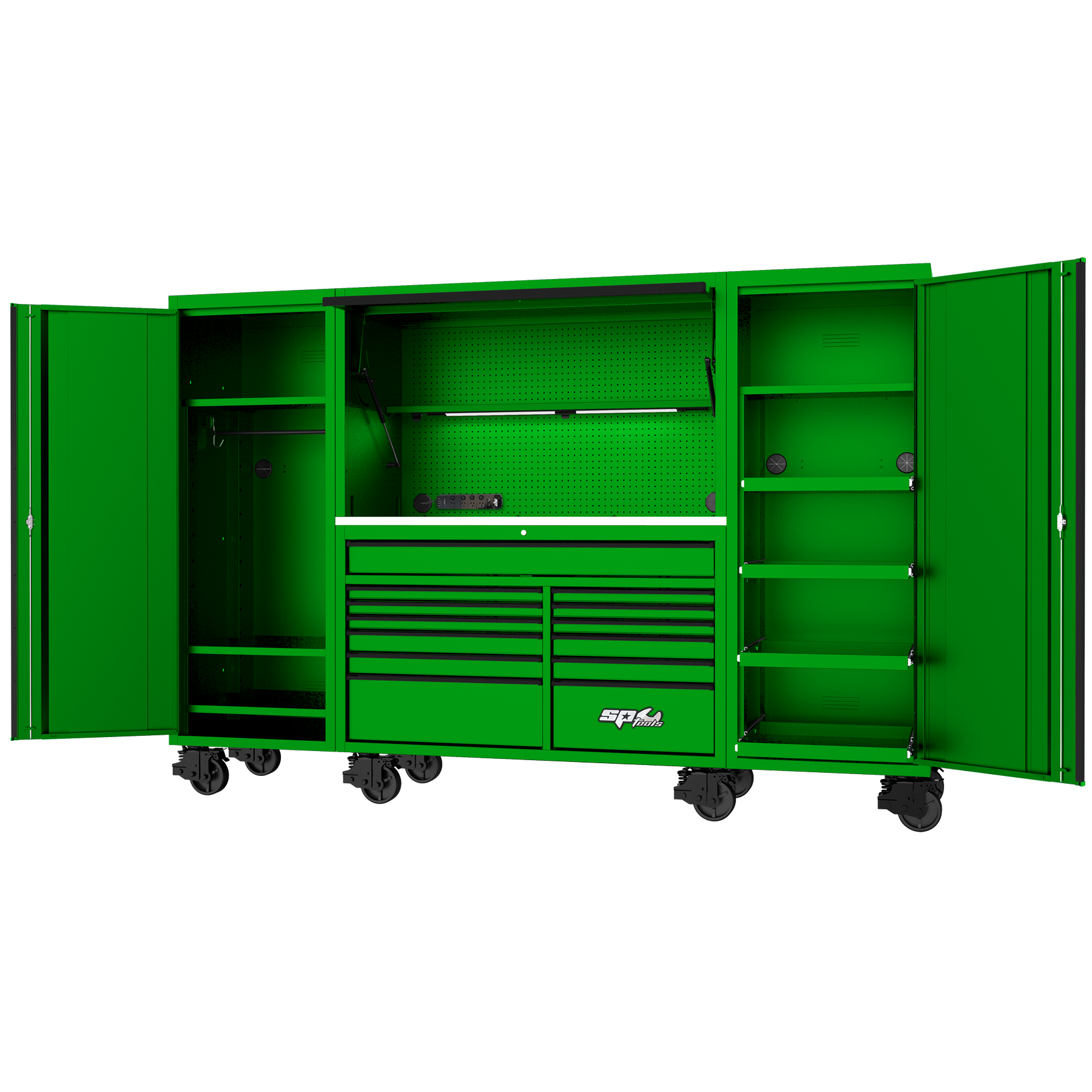 Double Wall Super Duty Construction All Usa Sumo Series Boxes Use 1.5mm (14.5Ga) Steel Construction As Standard. That’S More Steel Than Like For Like Competitors Extra Height – Technicians Seem To Be Getting Taller Every Generation. Sp Tools Has Stepped It Up And Increased The Head Clearance Height On Our Usa Sumo Series Hutches. We Have Set The New Clearance At 1855mm (6’1”). On-Board Power – Charge And Store All Your Cordless Tools, Lighting, And Diagnostic Equipment. Sp Tools Has Created A Unique On-Board Magnetic Attachment System So You Can Move And Use Your Power Where Ever You Need. Super Duty Casters – All Usa Sumo Series Storage System Use The Unique Spring-Loaded Super Duty Caster. Each Caster Is Capable Of Supporting 400Kg.Sp Max Bbs Drawer Slides – The Drawer Slides In The New Usa Sumo Series Have Lifted Us To A New Level Of Capacity Over And Above Our Existing Bbs. They Are Rated At 60Kg Per Drawer And 120Kg Per Drawer On The Wider And Deeper Drawers Sp One-Touch Cliklok – The New Drawer Retention System Has An Easy One Touch Single Handed Release And Open Function. The Perfect Combination To Keep The Drawers Securely Closed, But Easy To Open Uv Powder Coating – The Usa Sumo Series Uses The Latest Technology In Ultraviolet (Uv) Powder Coating. We Have Combined The Advantages Of Thermosetting Powder Coatings With Those Of Liquid Ultraviolet Cure Coating Technologies.