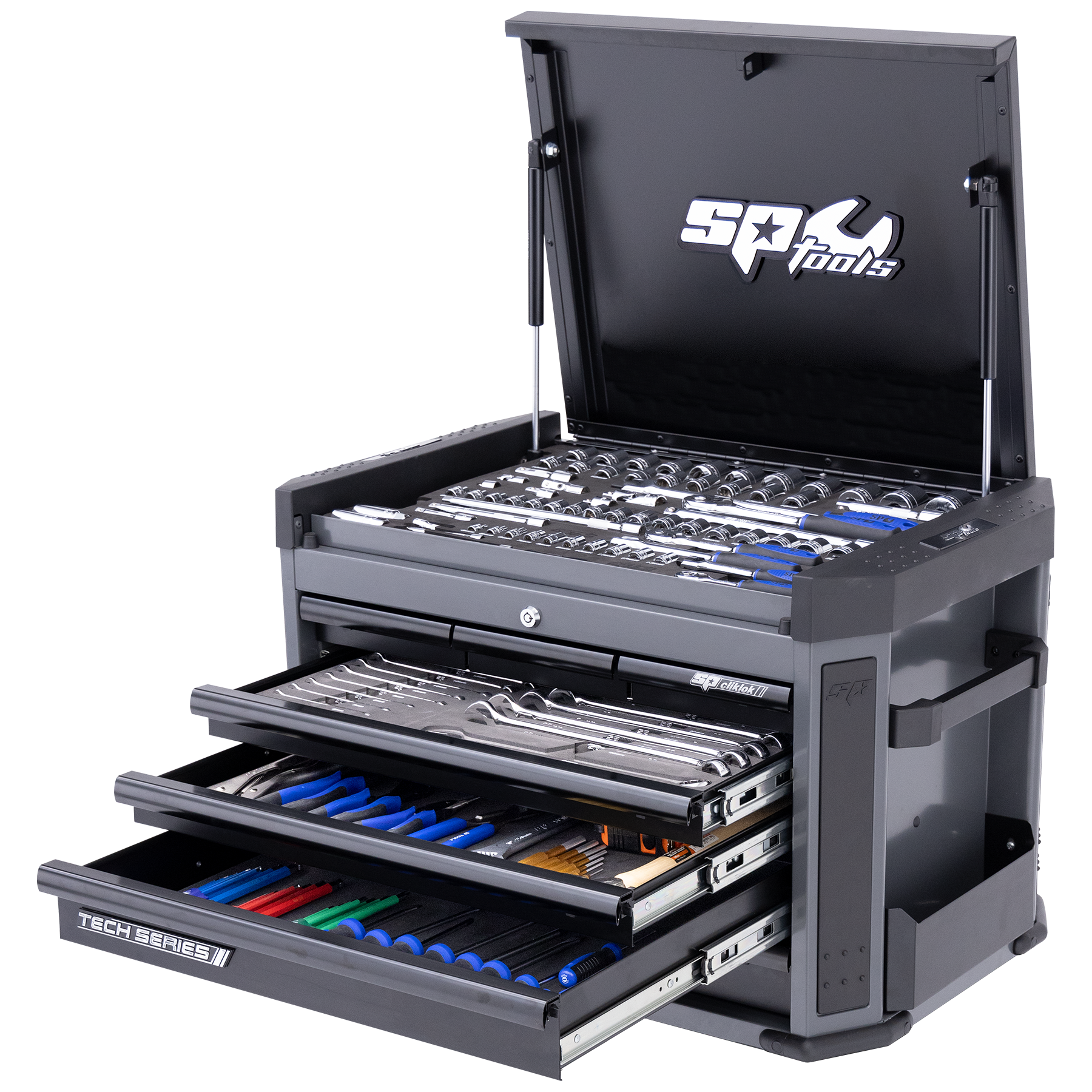 • 730(W) X 475(D) X 485(H) • 1/4” & 3/8”Dr Sockets & Accessories • Metric Roe Spanners, Flare Nut Spanners• Screwdrivers & Hex Keys • Pliers Cutters & Shifters • Hammer & Power Bit Set