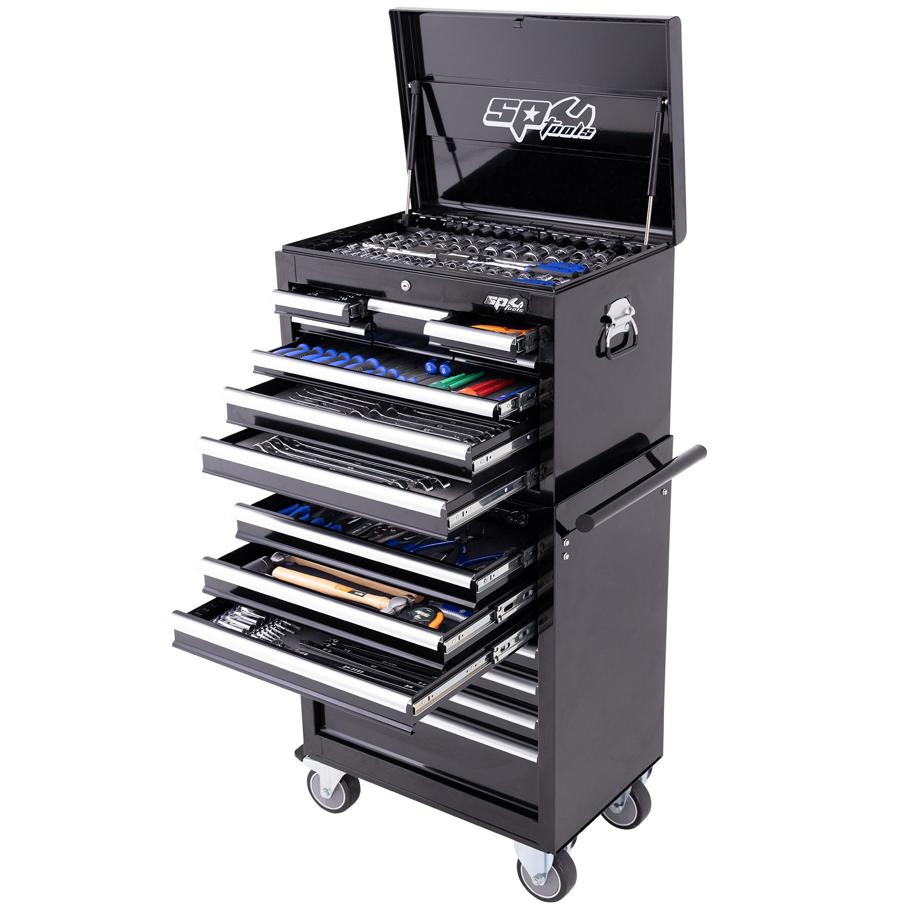 • 1/4”, 3/8” & 1/2”Dr Sockets & Accessories • Adjustable Wrenches • Sockets • Roe Spanners • Screwdrivers • Hex Keys • Punch And Chisel Sets • Ball Pein Hammers • Pliers • Circlip Pliers • Diagonal Cutters • Hacksaw • Tape Measure • Hook & Pick Set • Pry Bar Set • 6 X Tool Storage Trays • 8 Drawer Tool Box • 7 Drawer Custom Series Roller Cabinet