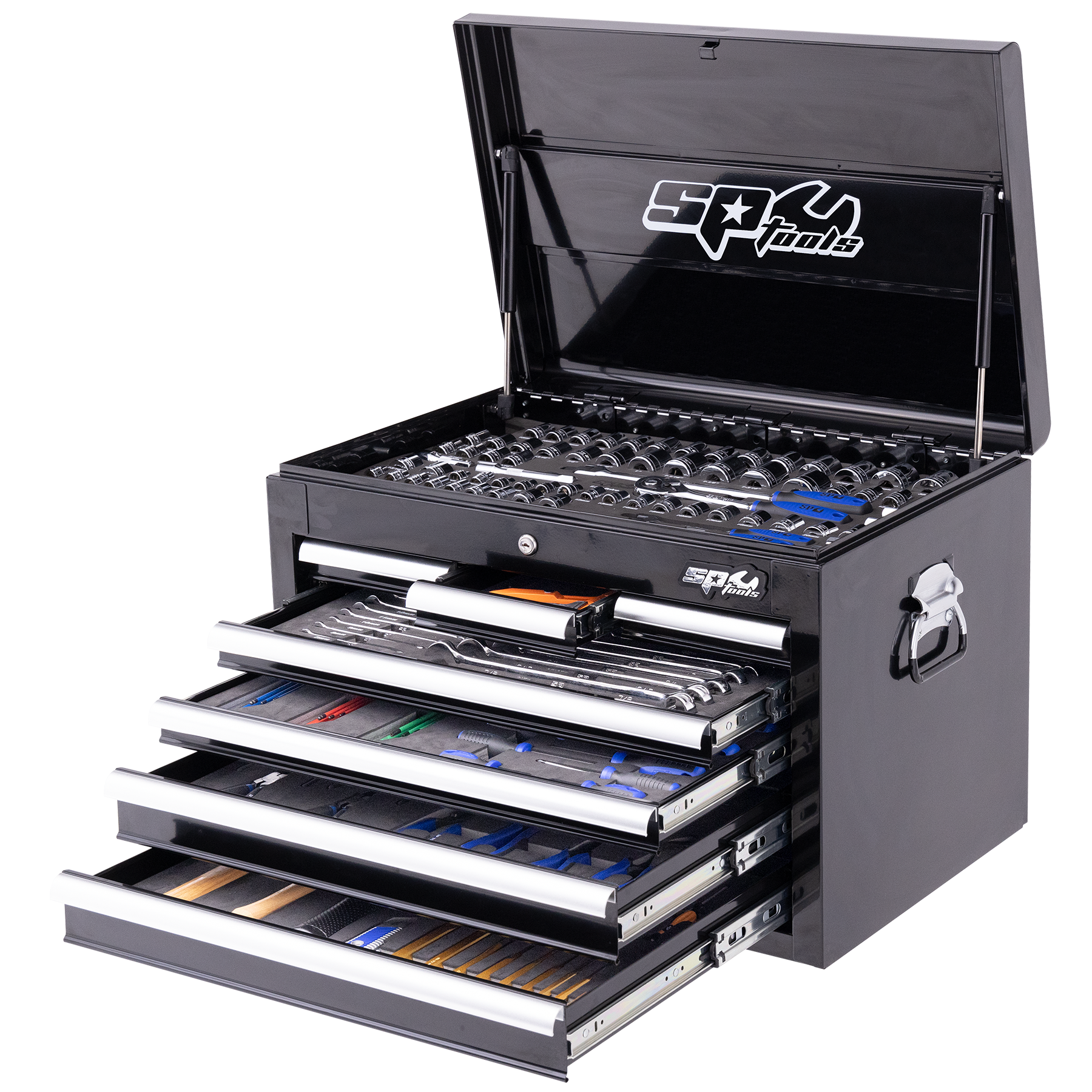 • Roe Combination Spanners • 1/4”, 3/8” & 1/2”Dr Sockets & Accessories • Hex Keys, Bit Set & Screwdrivers • Pliers & Cutters • Hammers, Hacksaw & Tape Measure • Adjustable Wrenches & Knife • Hook & Pick Sets • Pin Punch & Chisel Set • 7 Drawer Tool Box