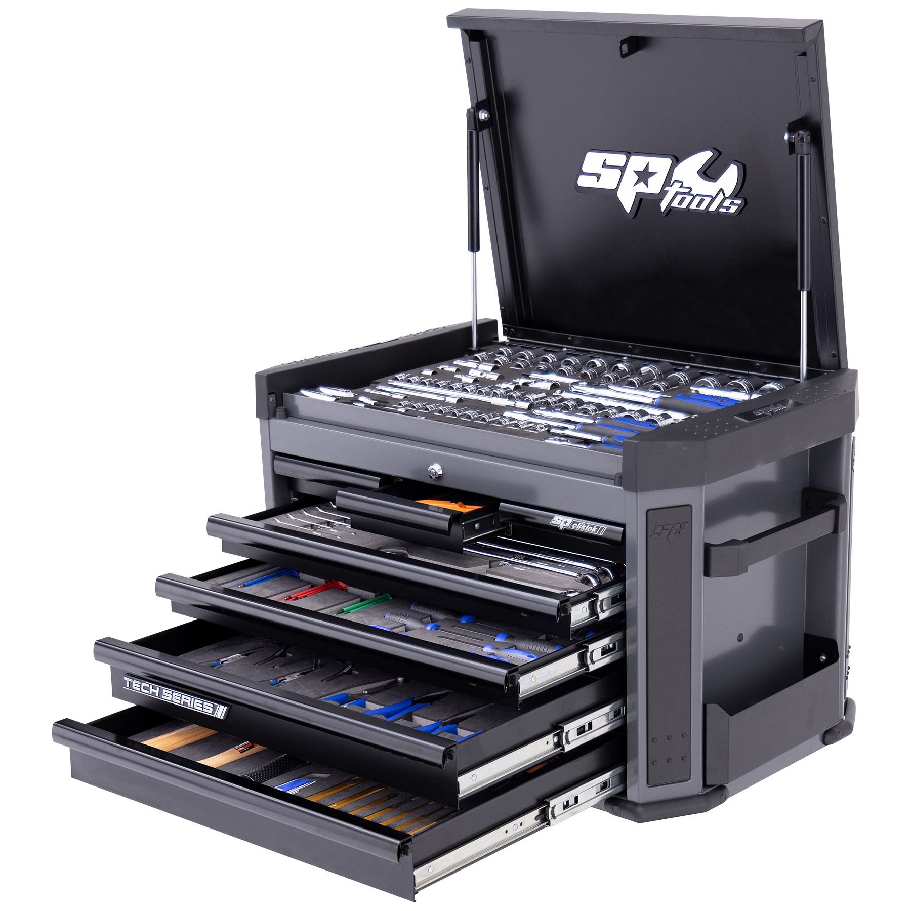 305Pc Metric Tool Kit• Roe And Flare Nut Spanners • 1/4”, 3/8” & 1/2”Dr Sockets & Accessories • Screwdrivers • Pliers & Cutters • Hex & Torx Keys • Adjustable Wrenches • Hammer & Hacksaw • Tape Measure • Punch & Chisel Set