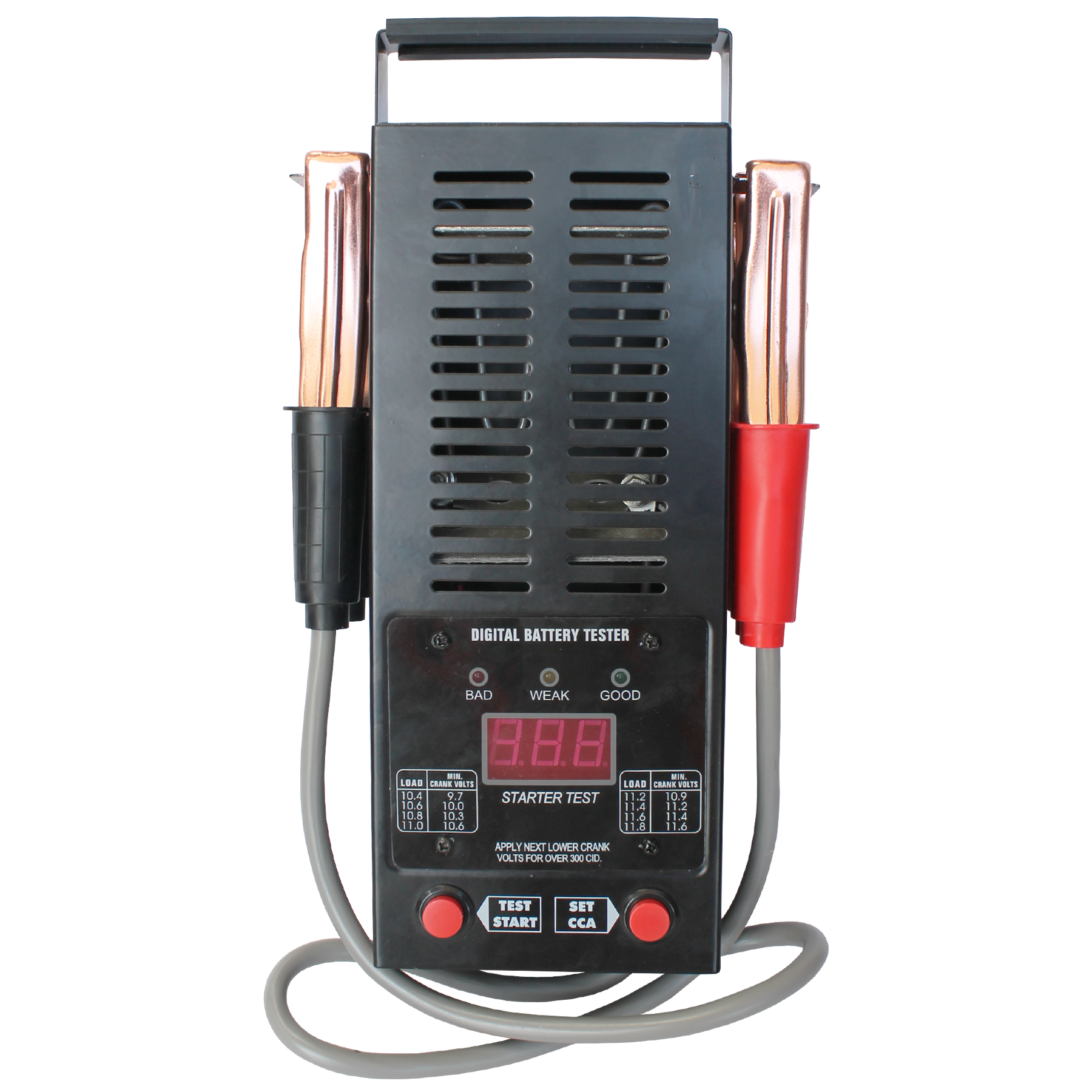 Battery Load Tester • American Style Drop Tester. Load Applied By Internal Switchgear (Non-Sparking) • Suitable For 6 And 12 Volt Batteries • Applies Load Across Cells & Measures Output On Meter • Accurate Indication Of Battery Voltage, Faulty Cell And Short Circuit