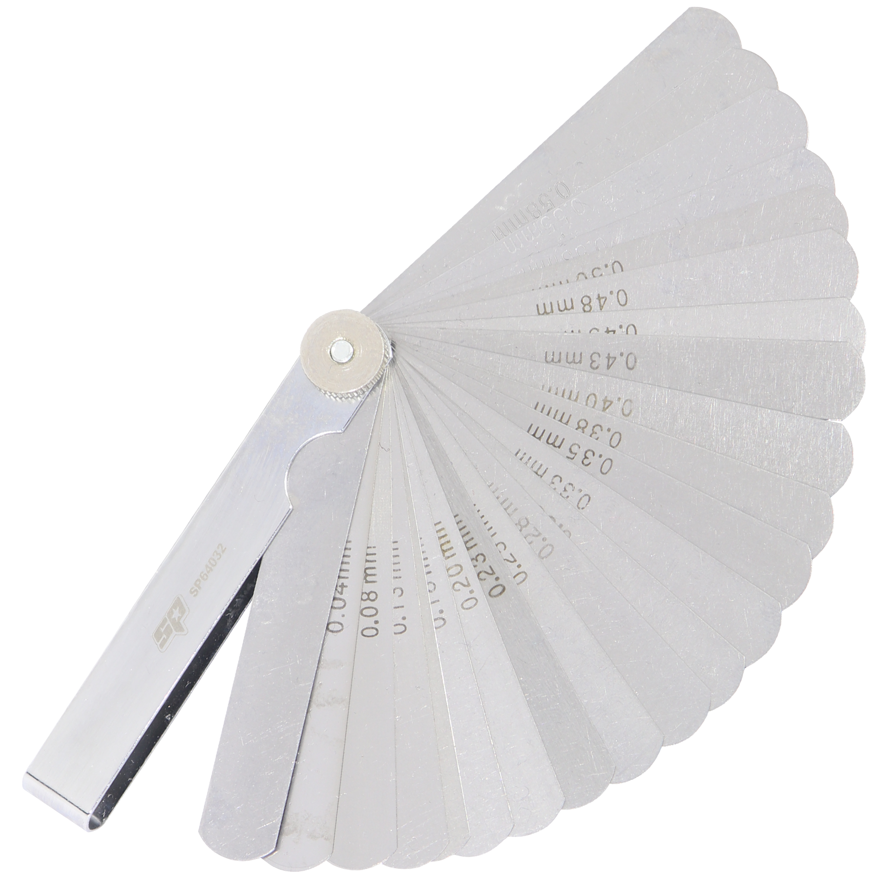 26Pc Type A Feeler Gauge Set • Straight Blades 85mm Long X 13mm Wide • 0.0015” – 0.025” • Marked With Equivalent Metric Sizes