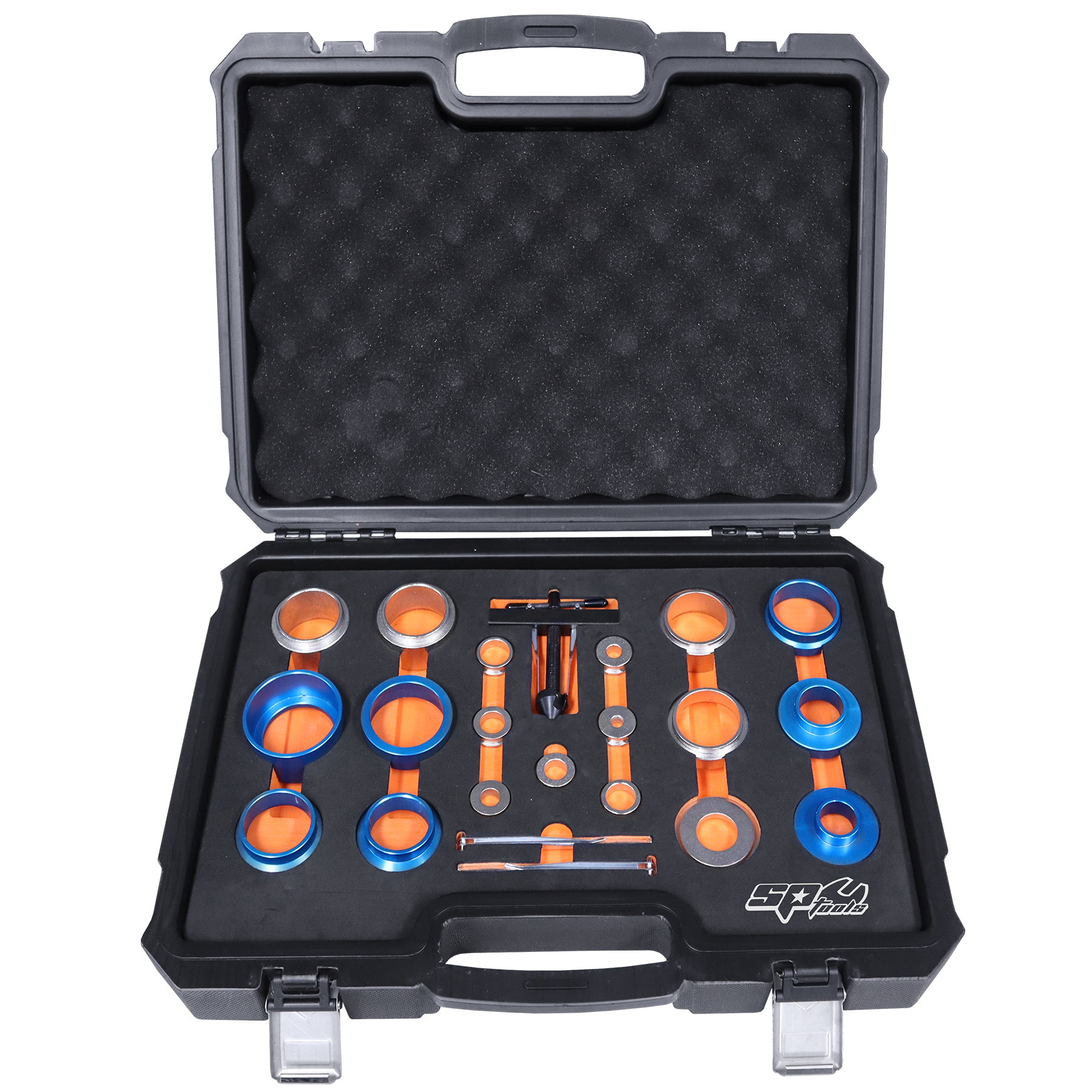 Crank Seal Removal & Installation Kit • Compact Puller With Unique Extracting Hooks Engage Seal For Quick Removal • Interchangeable Sleeves & Mandrels Allow Easy Installation Of New Seal • Suits Seals From 27mm To 58mm