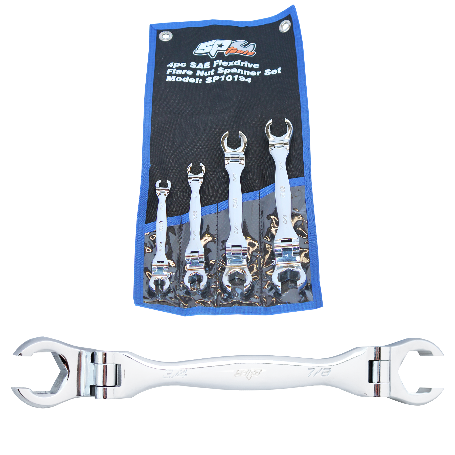 The Flare Nut Flexhead Spanner Set - SAE - 4pc is built to reach the most inaccessible fasteners with finesse and strength. Engineered for soft fittings in aluminium, copper, and brass, it's perfect for fuel, brake, A/C, and diesel line work where precision and care are crucial.