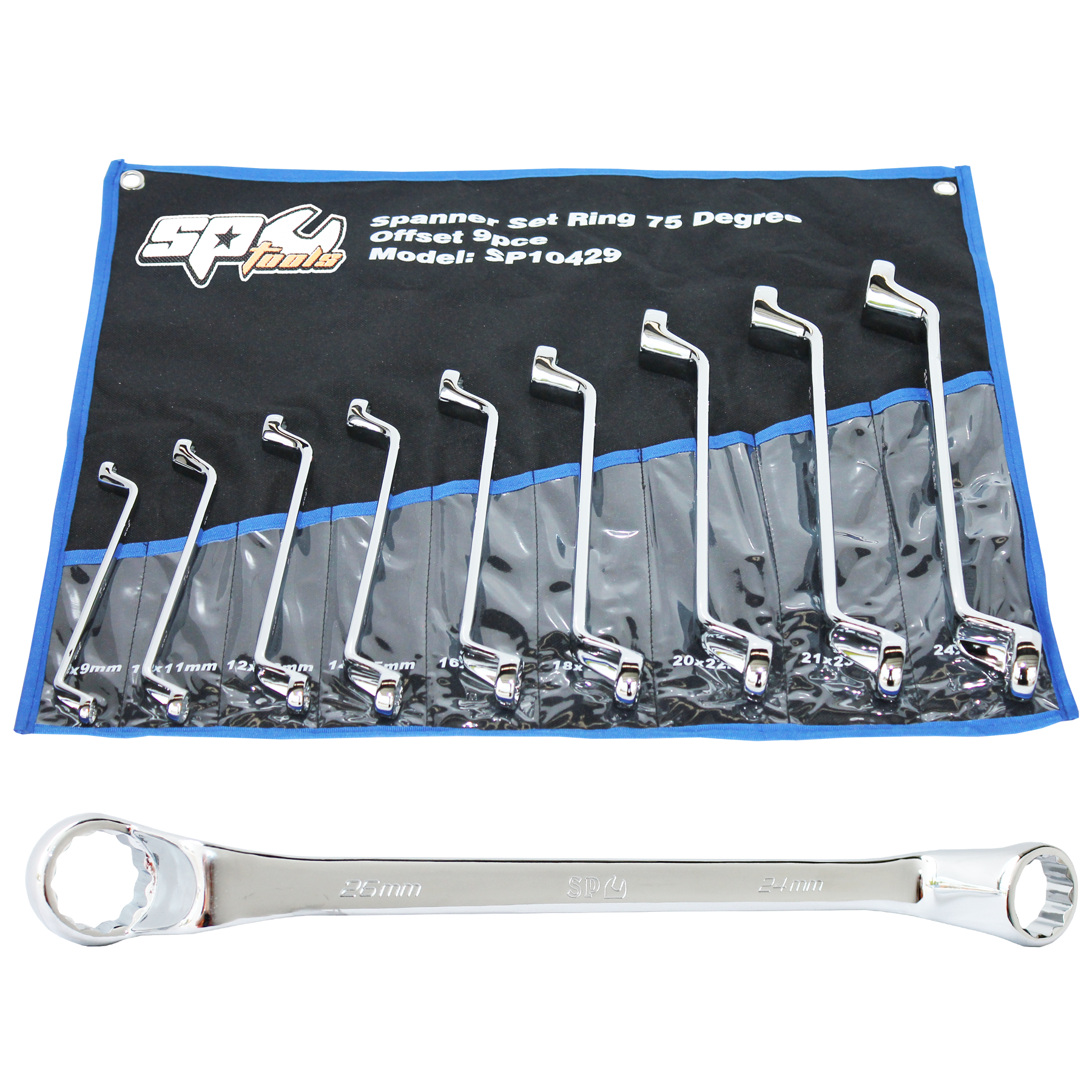 The 9pc Double Ring Long Spanner Set - Metric with a 75° Offset is built for hard-to-reach fasteners and high-leverage applications. Designed for professional durability and precision, this set is a must-have for mechanics, engineers, and tradespeople tackling tough jobs.