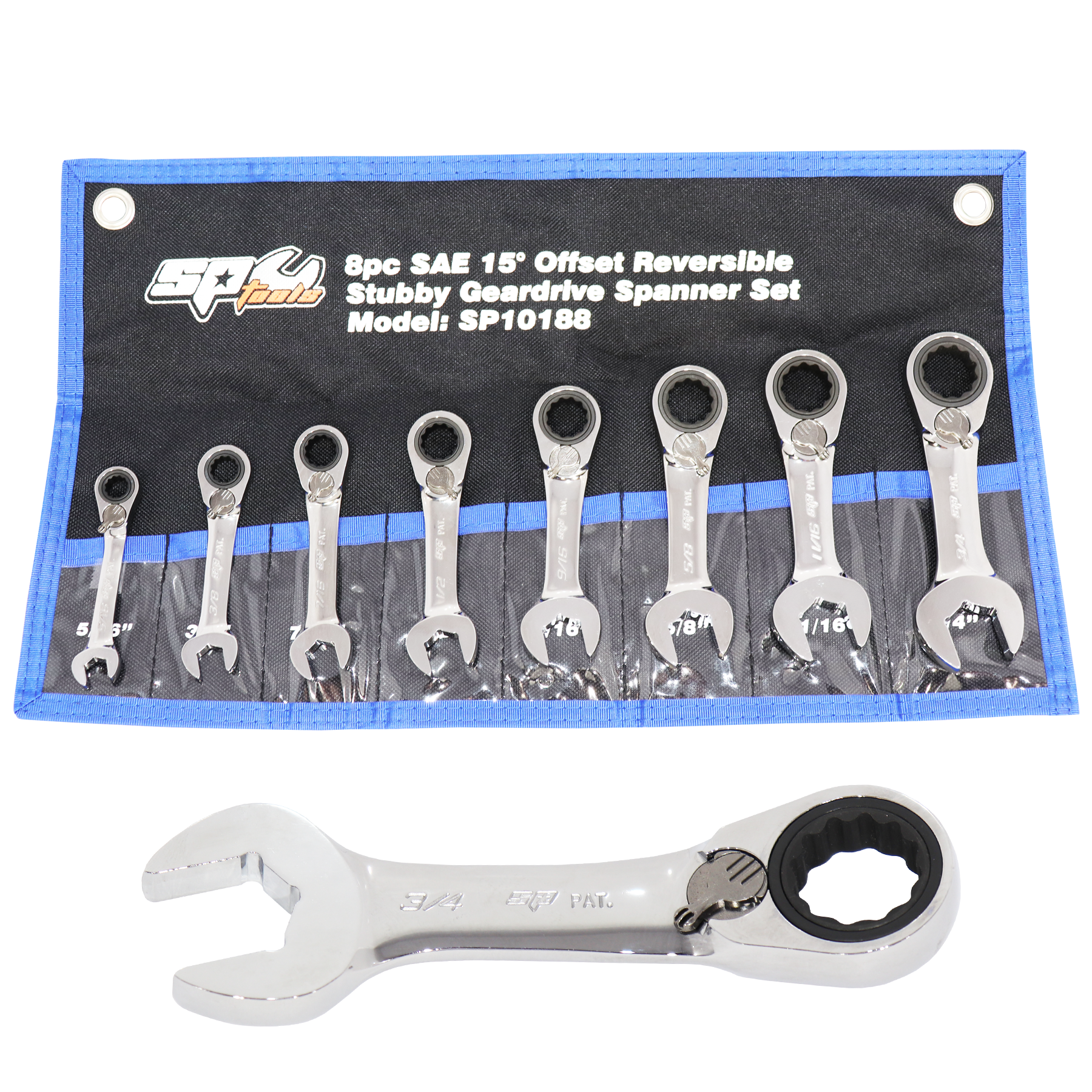 The Gear Drive ROE Spanner Set - 15° Offset Stubby - SAE is designed to provide strength, durability, and accessibility in confined spaces. With a 15° offset and stubby design, this set is perfect for automotive, industrial, and plumbing applications where space is limited, but performance is essential.