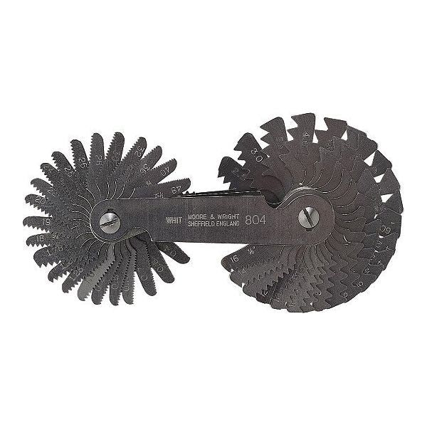 Introducing the Spear & Jackson Screw Pitch Gauge S.I. Metric & Whitworth 49 Blade, designed for precision and accuracy in identifying screw pitches. Proudly distributed by Industrial Shed.