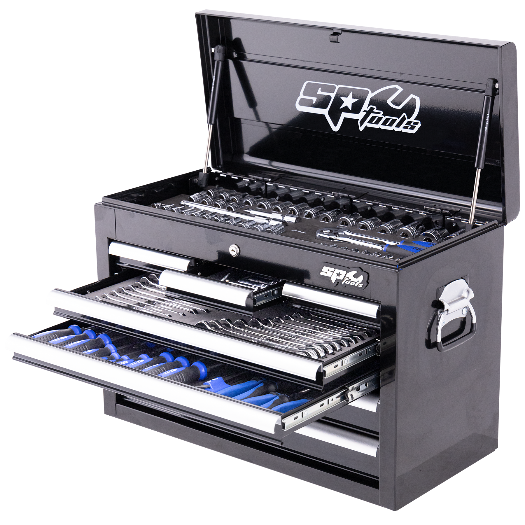 This comprehensive tool kit is designed for professional use, packed with a wide range of sockets, spanners, and accessories to cover all your needs. Featuring high-quality tools like ratchets, extension bars, spanners, and screwdrivers, this set ensures you have everything required for any task, all neatly organized in a durable Custom Series Tool Box.