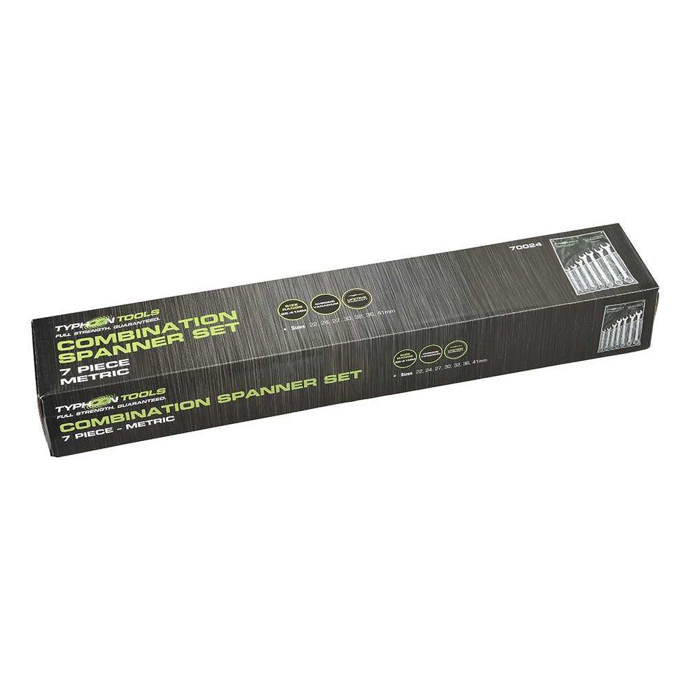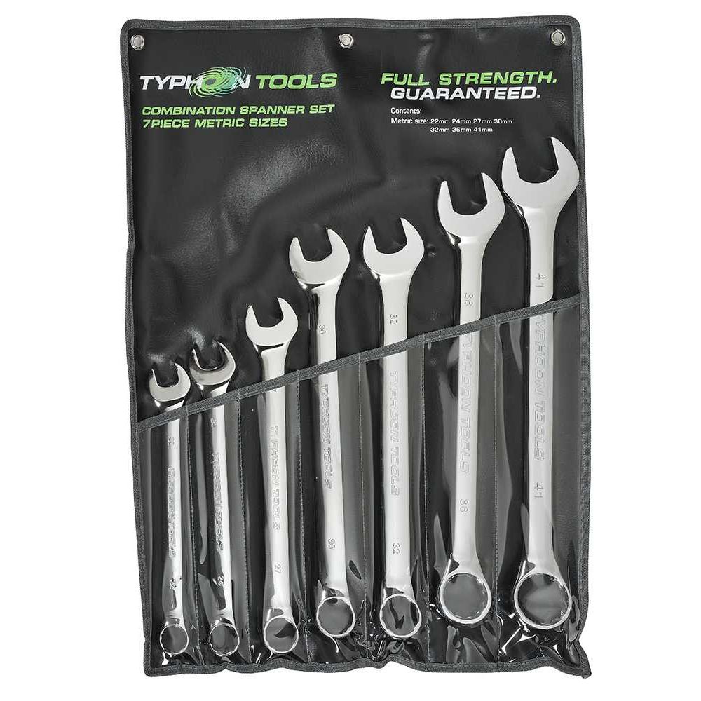 Introducing the Typhoon Tools 7 pc Jumbo Combination Spanner Set Metric 22 - 41mm by Typhoon, your ultimate solution for tackling even the toughest fasteners in automotive and industrial applications. This comprehensive spanner set is designed for professionals and DIY enthusiasts alike who demand quality and durability.