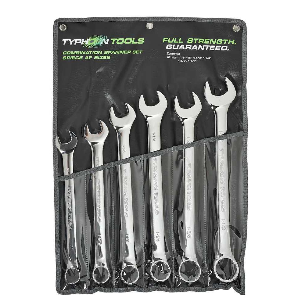 Introducing the Typhoon Tools - 6 pc Jumbo Combination Spanner Set Af 1" - 1 1/2" | 70025, your ultimate solution for tackling heavy-duty fastening tasks in both professional and home garage settings.