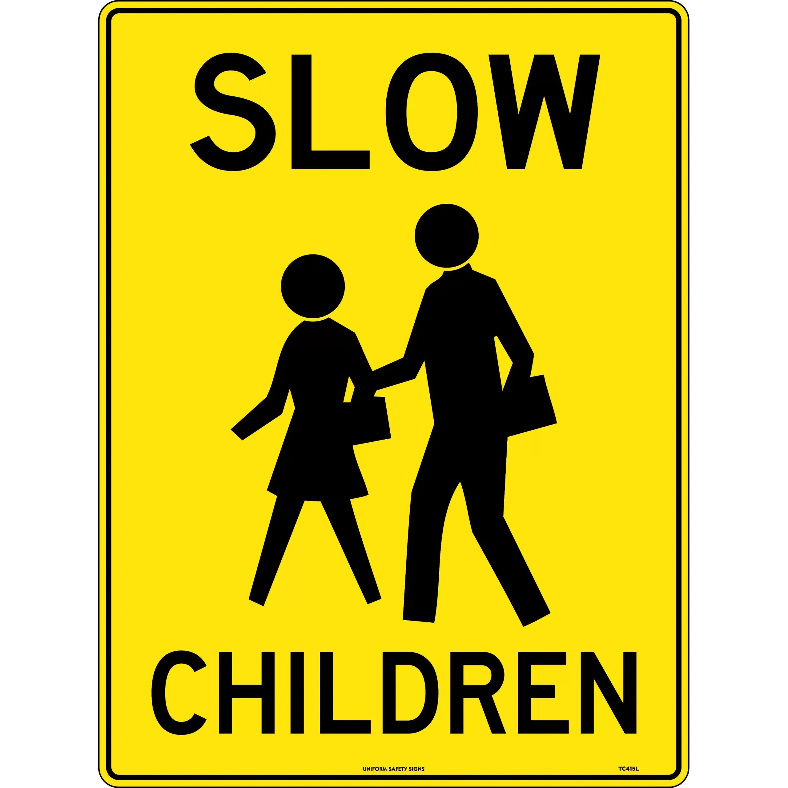 Uniform Safety Signs - 450x300mm - Metal - Slow, Children - with picto | TC415LSM