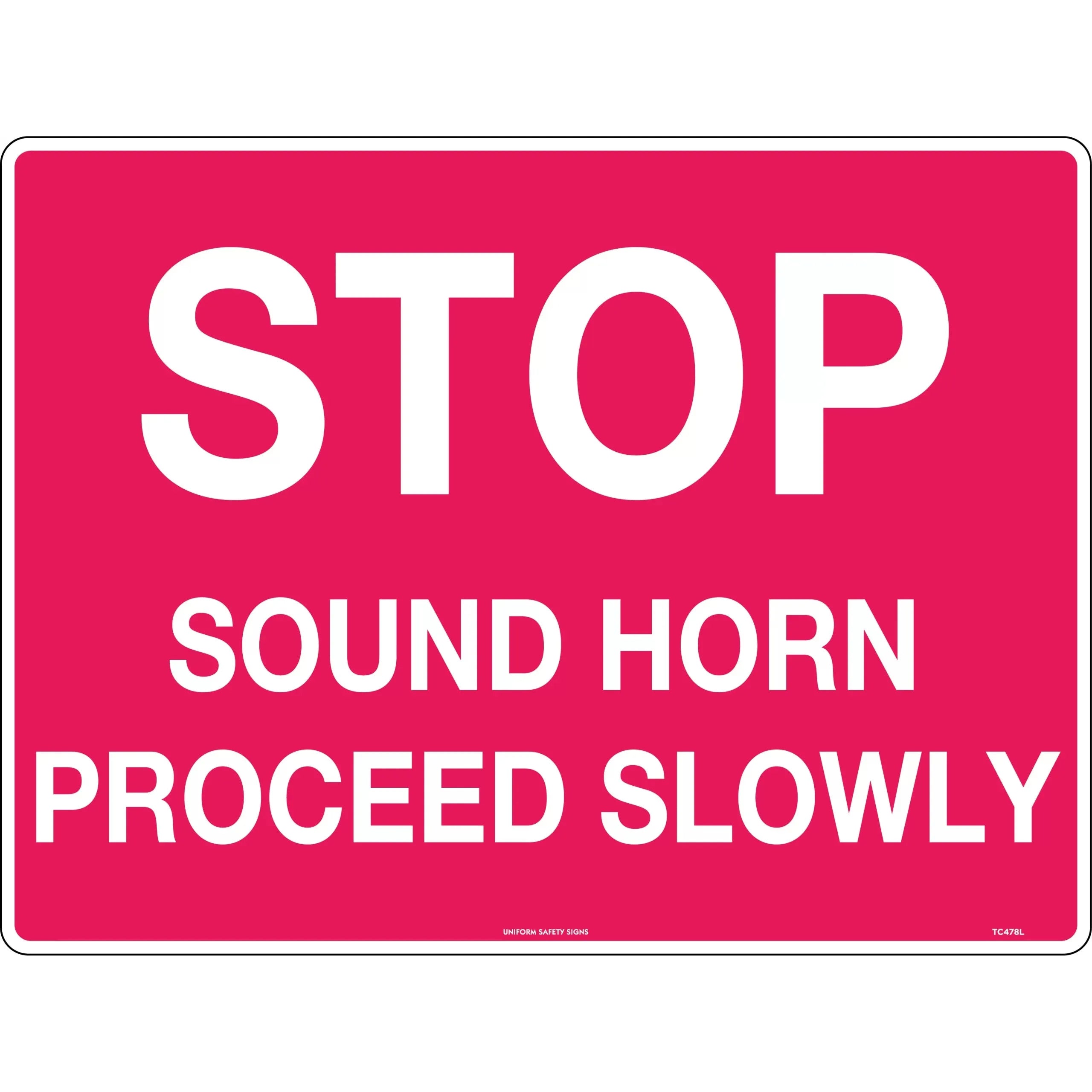 Uniform Safety Signs - 450x300mm - Metal - Stop Sound Horn Proceed Slowly | TC478LSM