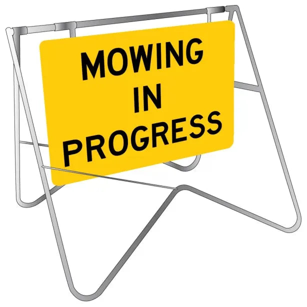Uniform Safety Signs - 900x600mm - Swing Stand and Metal Sign - Class 1 - Mowing In Progress [FREIGHT CHARGES APPLY] | STD520 Kit