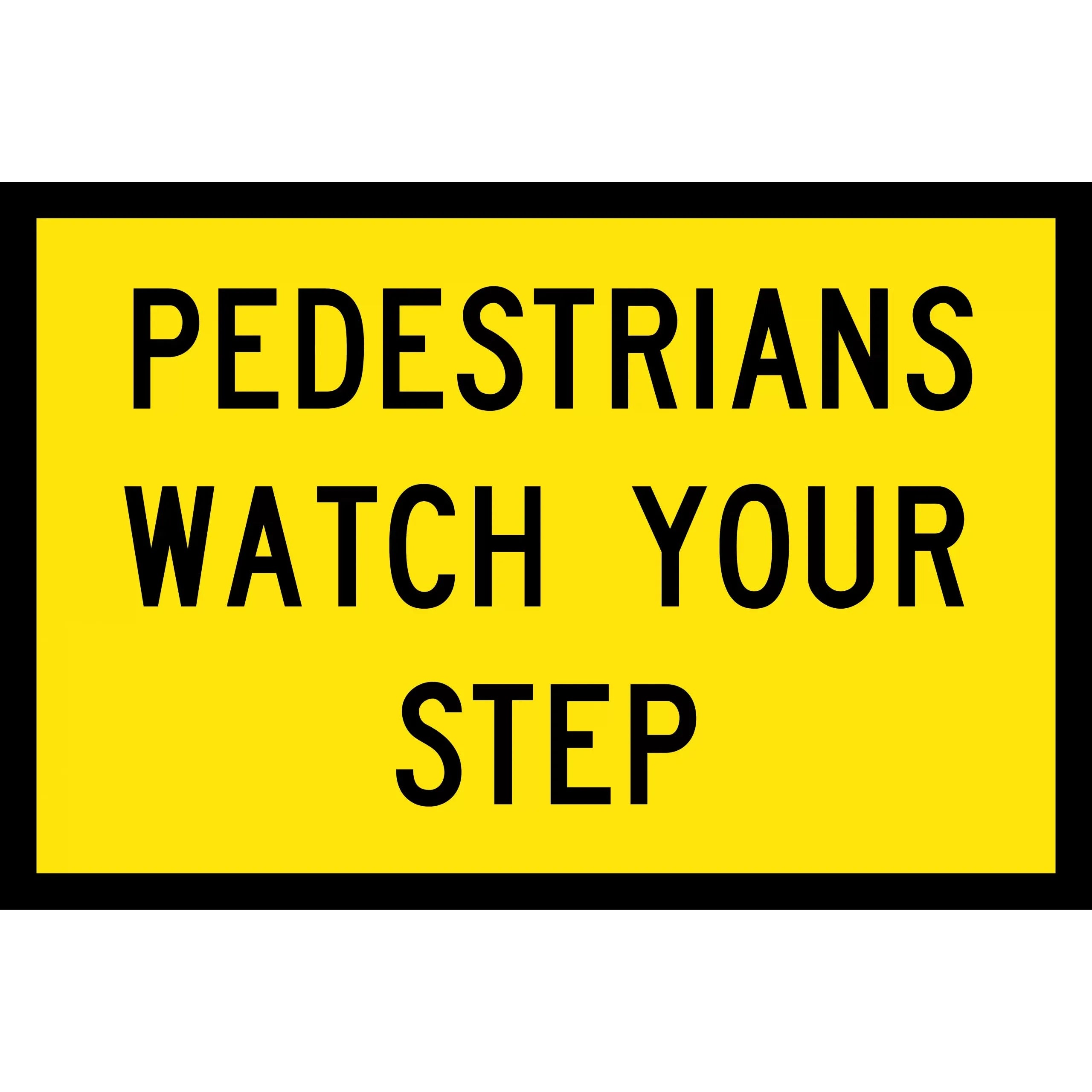 Uniform Safety Signs - Boxed Edge - 900x600mm - Class 1 Reflective - Pedestrians Watch Your Step (B/Y) | T8-1